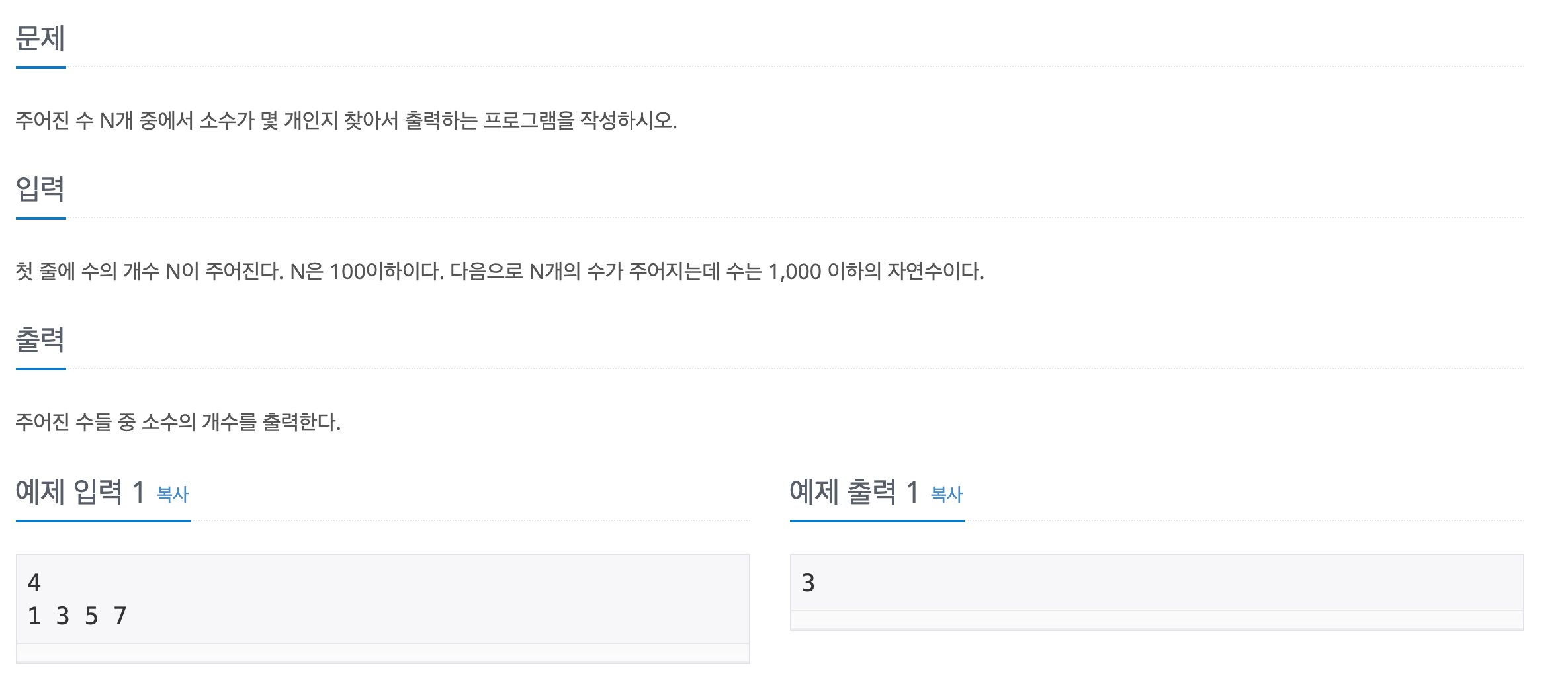 2, 3, 5, 7, 11 ... ๋ฑ 1๊ณผ ์๊ธฐ ์์ ๋ง์ ์ฝ์๋ก ๊ฐ๋ ์๋ฅผ ์์๋ผ๊ณ ํ๋ค.