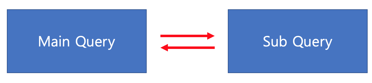 Correlated Subquery๋ ๋ด๋ถ Subquery์์ ์ธ๋ถํ ์ด๋ธ์ ๊ฐ์ ์ฐธ์กฐํ ๋ ์ฌ์ฉ๋ฉ๋๋ค. Subquery์๋ ๋ค๋ฅด๊ฒ Inner Query ๋ถํฐ Outer Query ์์๋๋ก ์คํ๋๋ ๊ฒ์ด ์๋๋ผ Outer Query์์ ์ฝ์ด์จ ํ์ ๊ฐ๊ณ Inner์ฟผ๋ฆฌ๋ฅผ ์คํํ๋ ๊ฒ์ ๋ฐ๋ณตํ์ฌ ๊ฒฐ๊ณผ๋ฅผ ์ถ๋ ฅํด์ค๋๋ค. Outer Query์ Inner Query์์ ๊ฐ์ ํ ์ด๋ธ์ ์ฐธ์กฐํ๋ค๋ฉด Outer Query์ ํ ์ด๋ธ์ Alias๋ฅผ ์ฌ์ฉํด์ ๊ตฌ๋ถํด์ค๋๋ค.