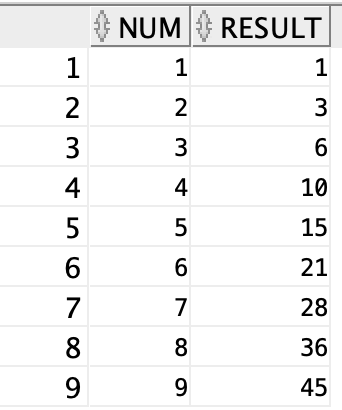 WITH CONTINUOUS(NUM, RESULT) AS(