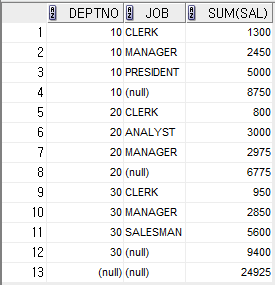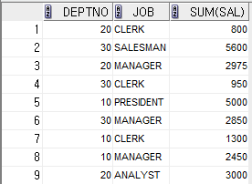 GROUP BY DEPTNO, JOB;