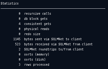 | bytes set via SQL*NET to client | ํฌ๊ทธ๋ผ์ด๋ ํ๋ก์ธ์ค์์ ํด๋ผ์ด์ธํธ๋ก ๋ณด๋ธ ์ด ๋ฐ์ดํธ ์ |