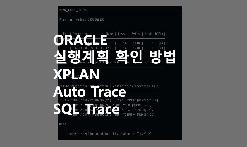 ์คํ๊ณํ๋ ์๊ณ ๋ฆฌ์ฆ ๋ฌธ์ ๋ฅผ ํธ๋ ๊ณผ์ ๊ณผ ๋น์ทํฉ๋๋ค. ์ตํฐ๋ง์ด์ ๊ฐ ์ด๋ค ๋ฐฉ์์ผ๋ก ์ฟผ๋ฆฌ๋ฅผ ์คํํด์ผ ๋น ๋ฅธ์๋๋ก ๊ฒฐ๊ณผ๋ฅผ ๋ฐํํ ์ ์๋์ง ๊ณ ๋ คํ์ฌ ๊ฒฐ๊ณผ๋ฅผ ์ป๊ธฐ๊น์ง์ ๊ณผ์ ์ ์๋ ค์ค๋๋ค. ์ฐ๋ฆฌ๋ ์ด๋ฌํ ์คํ๊ณํ์ ํ์ธํ๋ฉด์ SQL ์ฟผ๋ฆฌ๋ฌธ์ด ํจ์จ์ ์ผ๋ก ์ฌ์ฉ๋๊ณ ์๋์ง ํ์ธํ ์ ์์ต๋๋ค. ๋ฐ์ดํฐ๊ฐ ๋๋์ผ๋ก ๋์ด๋๋ฉด์ ํนํ ์๋๊ฐ ์ค์ํ ์์๊ฐ ๋์์ต๋๋ค. ๊ฐ๋จํ ํ๋์ ํตํด์๋ ์์ฒญ๋ ํจ์จ์ ์ป์ ์ ์๊ธฐ ๋๋ฌธ์ ํ๋์ ๊ธฐ๋ณธ์ธ ์คํ๊ณํ์ ํ์ธํ๋ ๋ฐฉ๋ฒ์ XPLAN, AutoTrace, SQL Trace ํฌ๊ฒ 3๊ฐ์ง ๋ฐฉ๋ฒ์ ์์๋ณด๊ฒ ์ต๋๋ค.