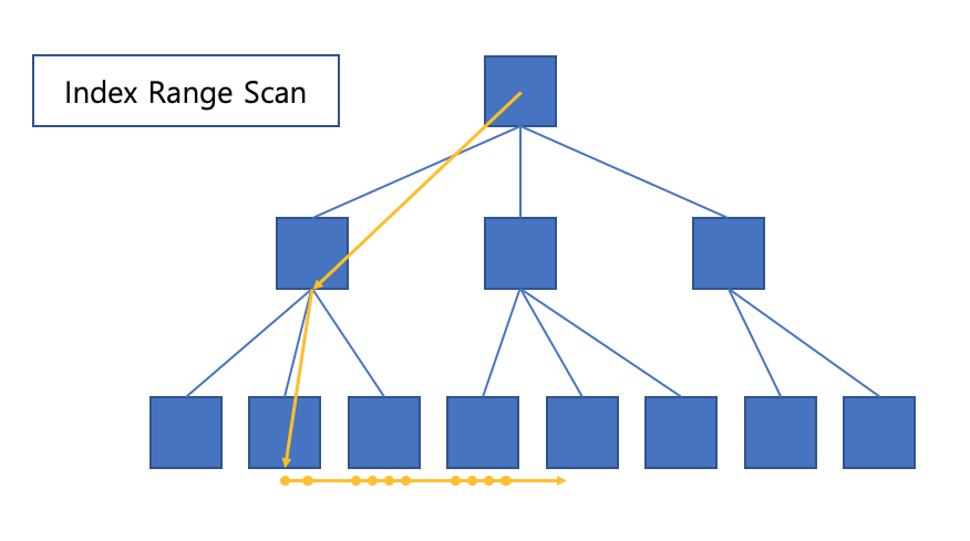 Index Range Scanμ κ°μ₯ μΌλ°μ μΈ Indexμ νμ λ°©μμ λλ€. Indexλ₯Ό μμ§ νμ ν νμν λ²μκΉμ§λ§ νμμ νλ λ°©μμ λλ€. μΈλ±μ€μ λ°μ΄ν°λ μ λ ¬λ μνλ‘ μ μ₯μ΄ λλ―λ‘ λ²μμ λν νμμ΄ νμν λ ν¨μ¨μ μΌλ‘ λ°μ΄ν°λ₯Ό νμν μ μμΌλ©° 리ν λΈλ‘μμ λ€μ 리νλΈλ‘μ μ 보λ₯Ό κ°κ³ μμ΄ λ€μ λΈλμΉ λΈλ‘μ μ½μ νμμμ΄ λ€μ λ°μ΄ν°λ₯Ό λ°λ‘ μ½μ μ μμ΅λλ€. μ΄λ° νΉμ§μ μ νμ©νλ©΄ μ λ ¬μμ μ μλ΅νκ±°λ μ΅λκ°, μ΅μκ°μ μ°Ύλλ° μ μ©νκ² νμ©λ μ μμ΅λλ€.
