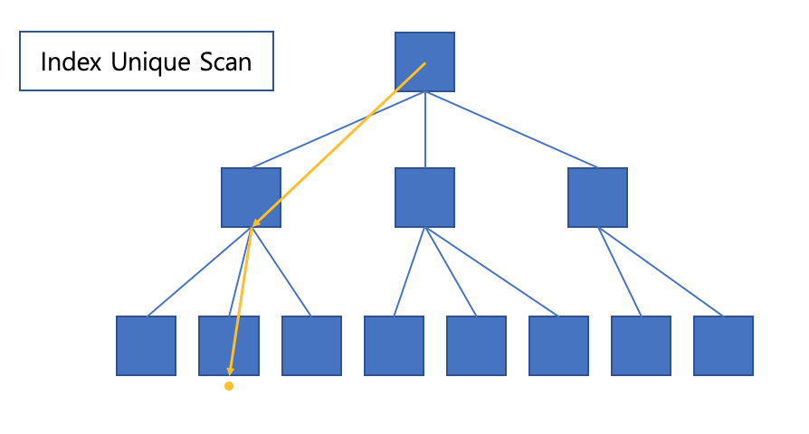 Index Unique Scanμ κ²°κ³Όλ‘ νλμ κ±΄μ΄ λ°νλ λ μ¬μ©λκ³ μΉΌλΌμ΄ μ μΌν κ°μΌλ‘ ꡬμ±λμ΄μΌ ν©λλ€. μ¦ Primary Keyμ κΈ°λ³Έμ μΌλ‘ μμ±λλ μΈλ±μ€μ λλ€. 쑰건 κ²μμ΄ λ¨μΌ(=)μΈ κ²½μ° μ¬μ©νκ²λ©λλ€.