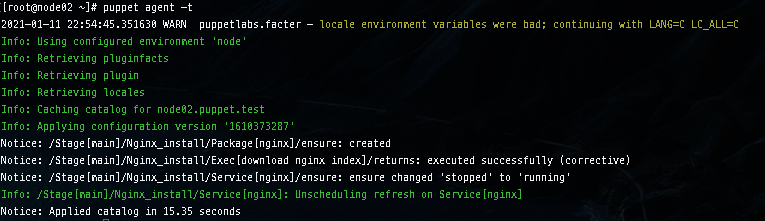 puppet์ node01๊ณผ node02, ๋ชจ๋ agent์์ ์คํํด๋ณธ๋ค.