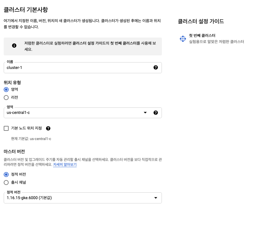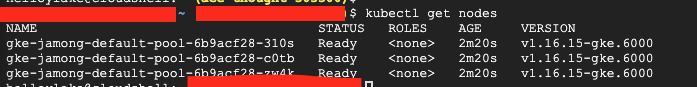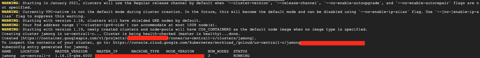 $ gcloud container clusters create jamong --num-nodes 3 --region us-central1-c