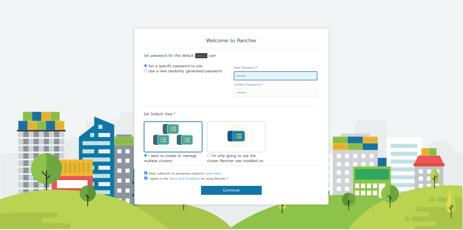 ์ฌ๊ธฐ๊น์ง๊ฐ rancher ์ค์น์ ํ๋์ ๋ง์คํฐ ๋ ธ๋๋ฅผ ๊ตฌ์ฑํ๋๋ฐ๊น์ง ์๋ฃํ์ต๋๋ค. ์ดํ์๋ ์์ปค๋ ธ๋๋ฅผ ์ถ๊ฐํ๊ณ ํ์์ ์ํ๋ฉด HA๊ตฌ์ฑ์ ์ํด master๋ ธ๋๋ฅผ ๋ ์ถ๊ฐํ ์ ์์ต๋๋ค.