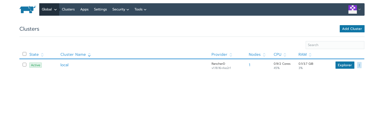 ํด๋น ์๋ฒ์ rancher๊ด๋ จ Web UI๋ฅผ ์ ๊ทผํ ์ ์๊ณ rancher-server๊ฐ ์คํ๋ ๋ ์ฟ ๋ฒ๋คํฐ์ค์ ํด๋ฌ์คํฐ๋ฅผ ๊ตฌ์ฑํ๊ณ ๋ ธ๋๋ฅผ ์ถ๊ฐํ๊ฒ๋ฉ๋๋ค.