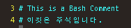 shell script์์ ์ฃผ์์ "#"์ ์ฌ์ฉํด์ ํ์ํฉ๋๋ค.