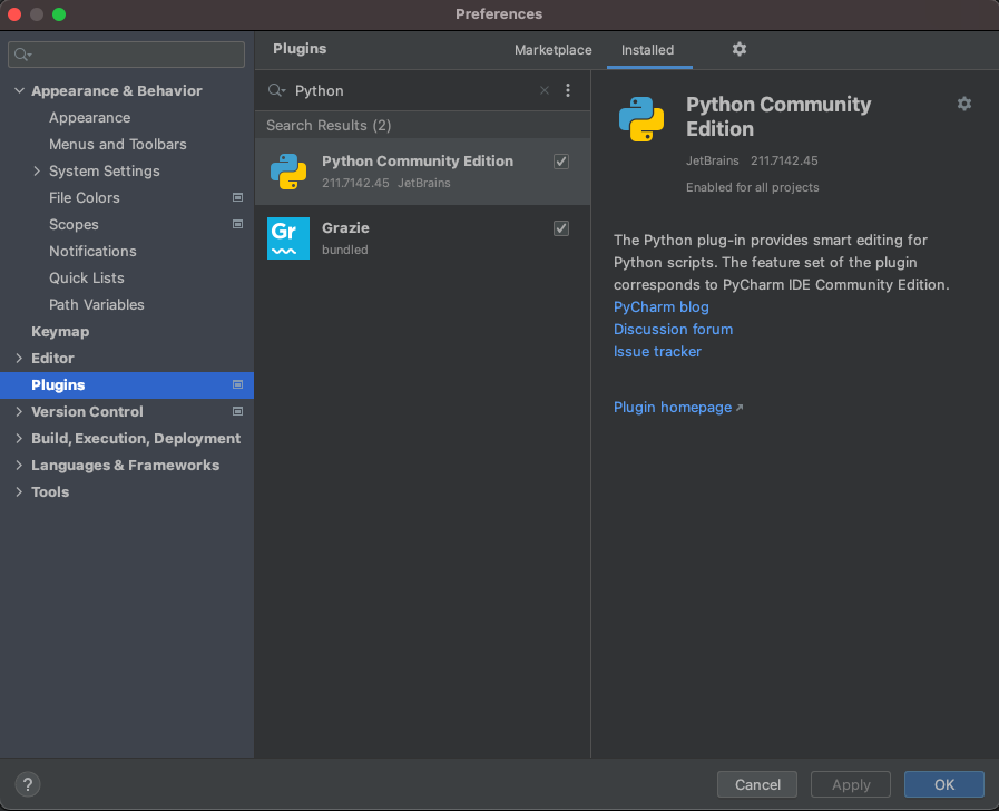 Intellijμμ Pythonμ λΉλ‘―νμ¬ Pythonμ κ°μνκ²½μ μ¬μ©νκΈ° μν΄μ Pluginμ΄ μ€μΉλμ΄ μμ΄μΌν©λλ€.